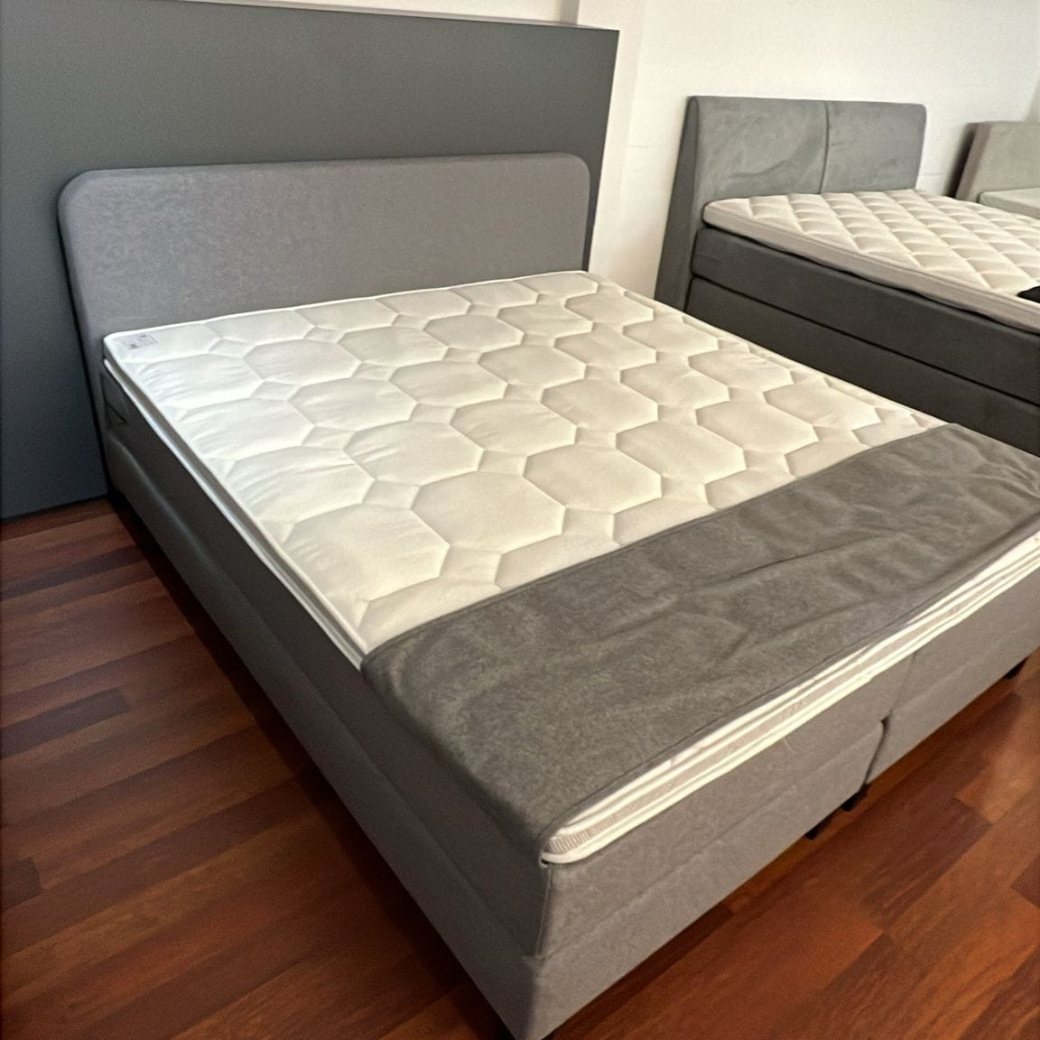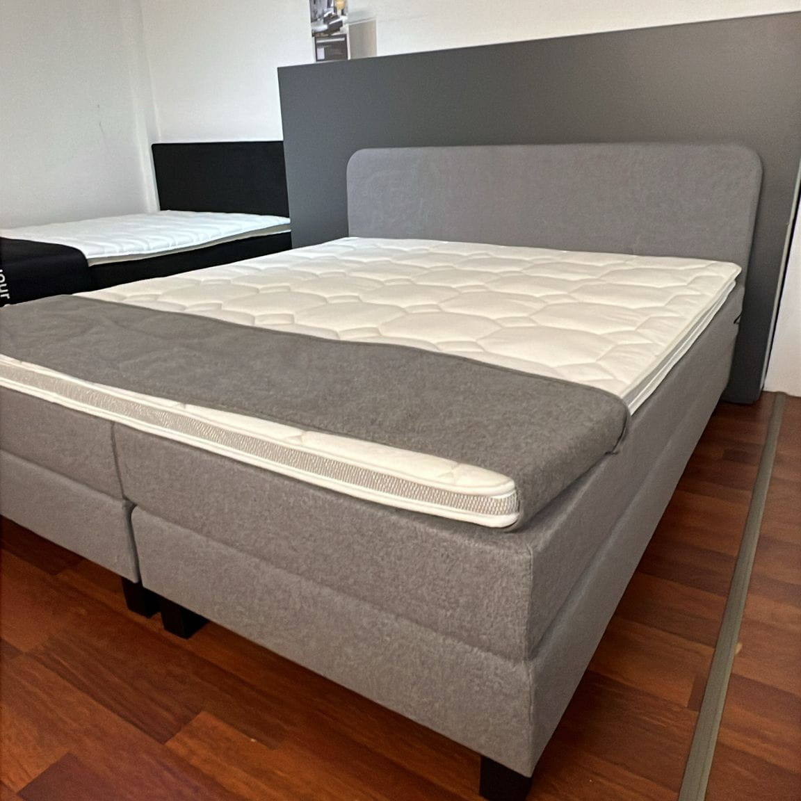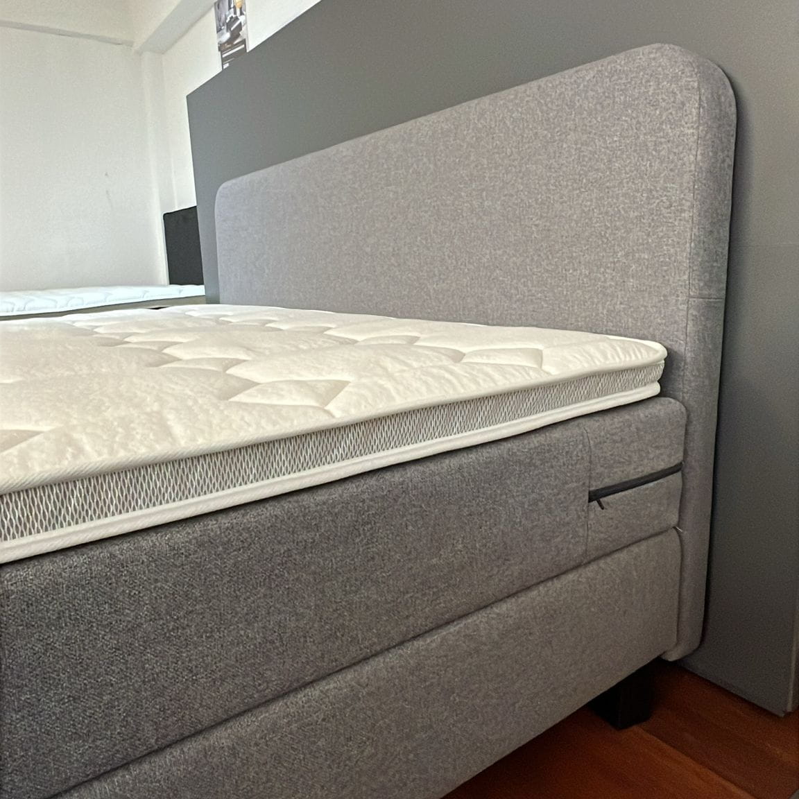 De Passie’s Mood is een stijlvolle boxspring met een zachte, moderne uitstraling. Het afgeronde, zwevende hoofdbord geeft het bed een elegant en rustig karakter, terwijl de combinatie van materialen zorgt voor comfortabel en ondersteunend ligcomfort. Een mooie balans tussen design en functionaliteit, perfect voor een sfeervolle slaapkamer.